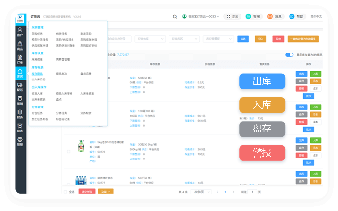 仓库管理:实时了解仓库库存,扫码入库、出库、根据订单采买、日常盘存管理;自动生成进销存Excel报表,不用手动做表,库存数量预警、过期预警、库存清零、修正库存价,库存管理高效又省心